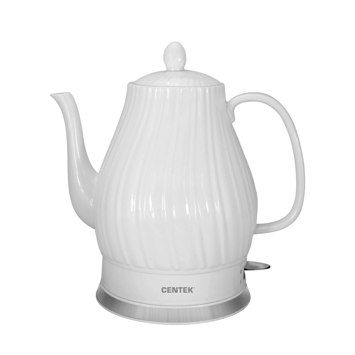 Чайник Centek CT-0064 – качественное и надежное изделие объемом 2 л и мощностью 2150 Вт, которое кипятит воду за несколько минут. Скрытый нагревательный элемент дает ряд весомых преимуществ перед моделями с открытой спиралью. К ним относятся: увеличенная теплоотдача, более быстрый нагрев воды и меньшая склонность к образованию накипи. Корпус и крышка выполнены из супербелой керамики, подставка с отделкой из нержавеющей стали. Удобная керамическая ручка чайника не перегревается и не скользит в ладони во время использования. Сливной носик обеспечивает удобное переливание воды. Плотно прилегающая к корпусу крышка обеспечивает герметичность при закипании. Керамический корпус чайника надолго удерживает тепло и прост в уходе. Благодаря автоматическому отключению чайника вам не нужно находиться рядом с прибором во время его работы. Защита включения без воды предупреждает поломку. Стильный дизайн. Подсветка на кнопке включения. Вращение базы на 360° и отсек для хранения шнура.