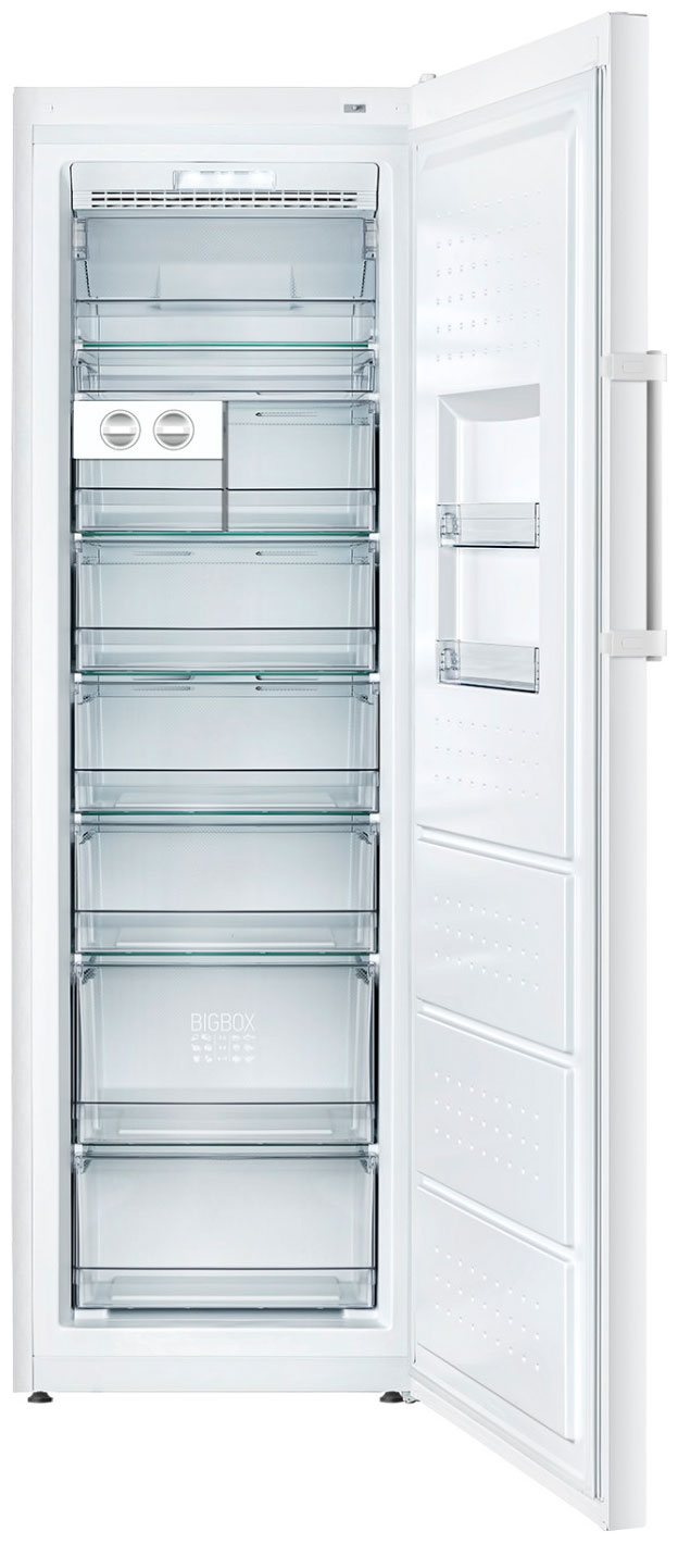 Увеличенная корзина BIG BOX расположена в нижней части морозильника и выполнена из ударопрочной прозрачной пластмассы, в которой можно разместить около 10 кг продуктов