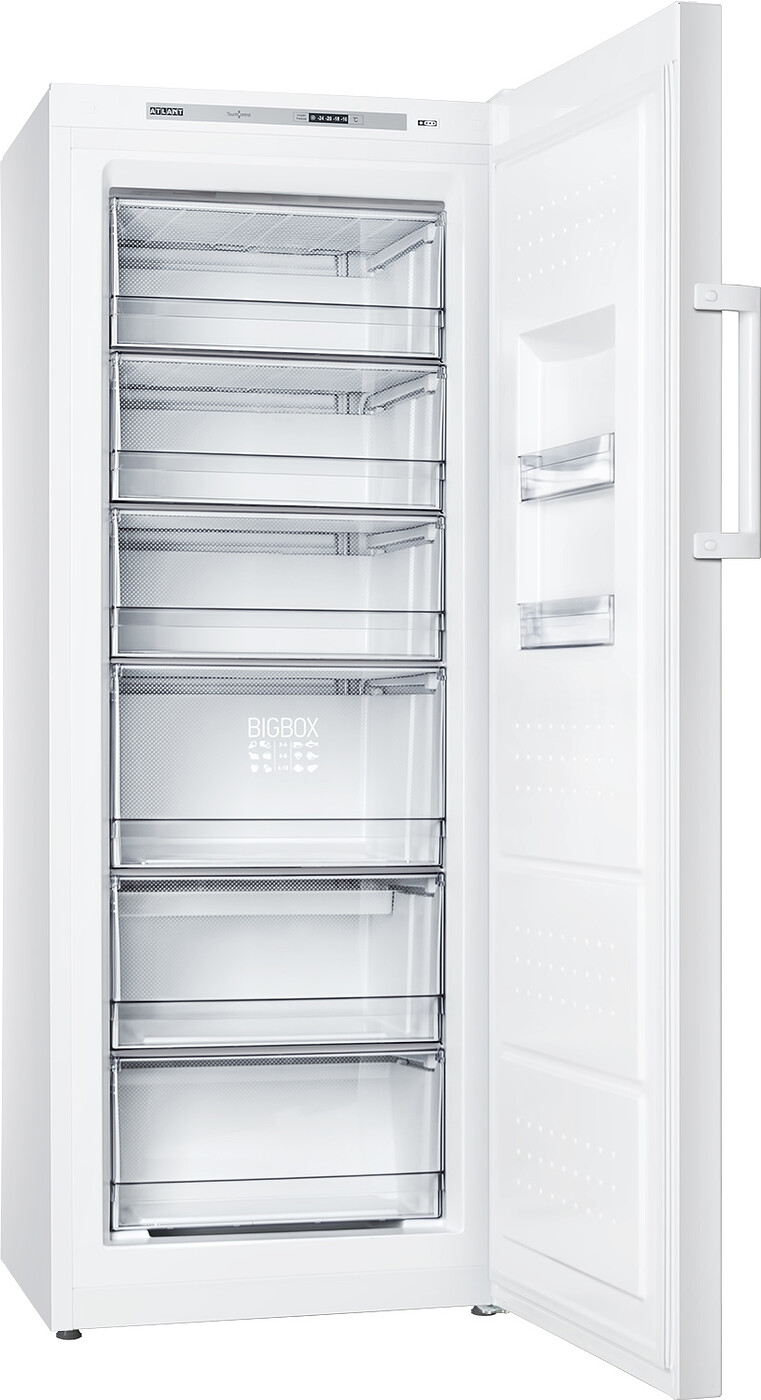 Увеличенная корзина BIG BOX расположена в нижней части морозильника и выполнена из ударопрочной прозрачной пластмассы, в которой можно разместить около 10 кг продуктов