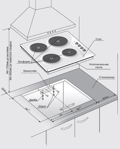 Размеры конфорок