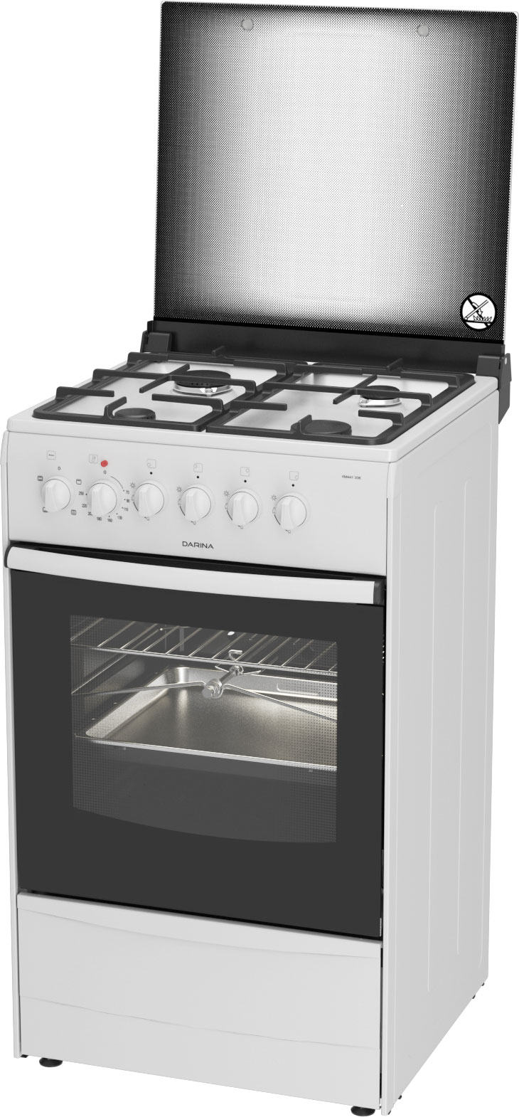 Комбинированная плита DARINA 1В КМ441 306 W белого цвета, выполнена из эмалированного метала. Поворотные ручки управления с интегрированным электрическим розжигом рабочего стола. Для удобства пользования, плита оснащена подсветкой духовки, выдвижным ящиком для посуды, регулируемым опорами и фиксированным положением «малое пламя». Размер плиты – 50x53x85. Единовременно потребляемая мощность – 2040 Вт.