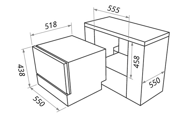 Габариты для встраивания: 45,8х55,5х55 см