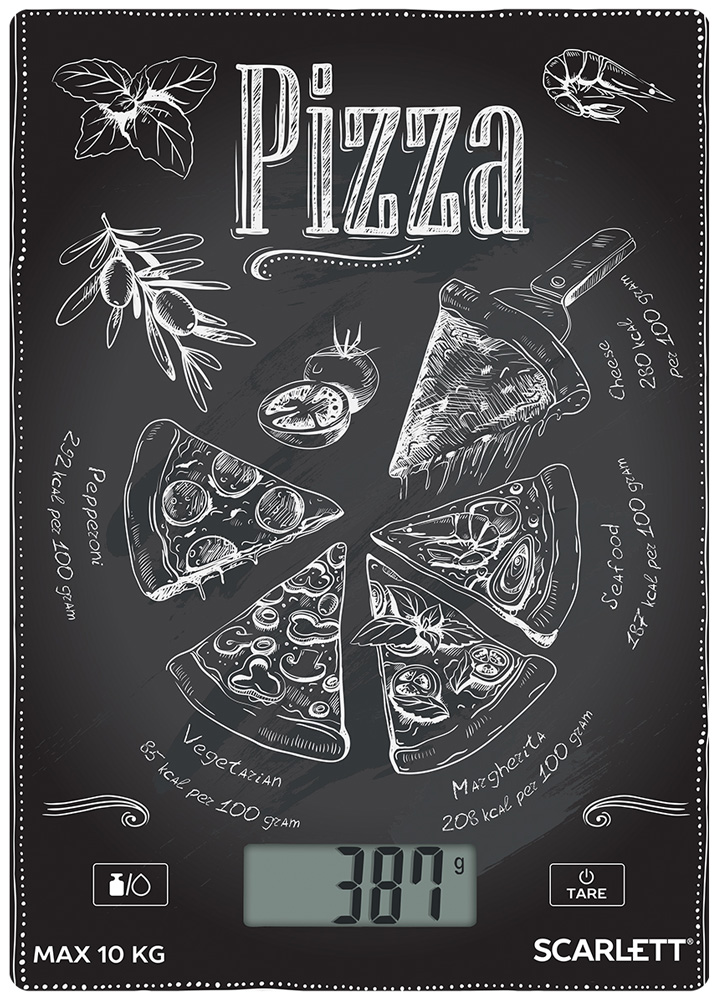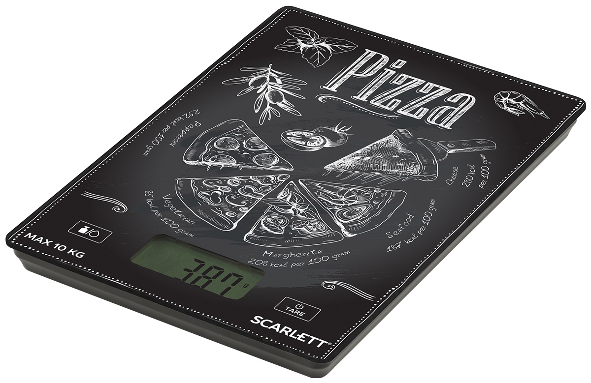 Платформу весов Scarlett SC-KS57P66 украшает современный принт, благодаря которому они станут заметным акцентом на вашей кухне. Устройство выдерживает нагрузку до 10 кг, цена деления составляет всего 1 г, так что вы сможете использовать эту модель и в период сезонных заготовок, и при ежедневном приготовлении блюд.